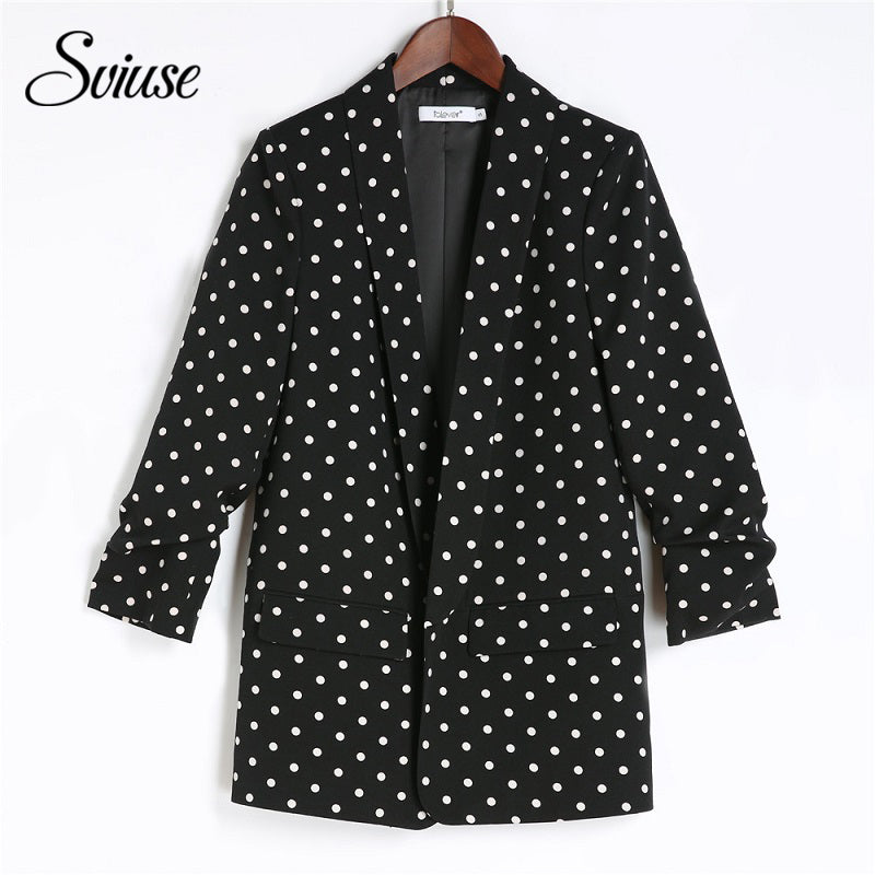 Gender: WomenItem Type: BlazersClosure Type: NonePattern Type: Polka DotDecoration: RuchedMaterial: Polyester,SpandexModel Number: 18SSC079Sleeve Length(cm): Three QuarterCollar: Shawl CollarClothing Length: RegularBrand Name: SviuseHooded: NoStyle: CasualSize: XS S M L XL XXL...